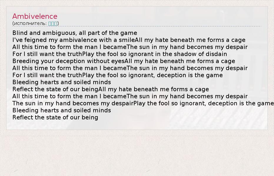 А как ты думаешь, о чем песня "Ambivelence" ?