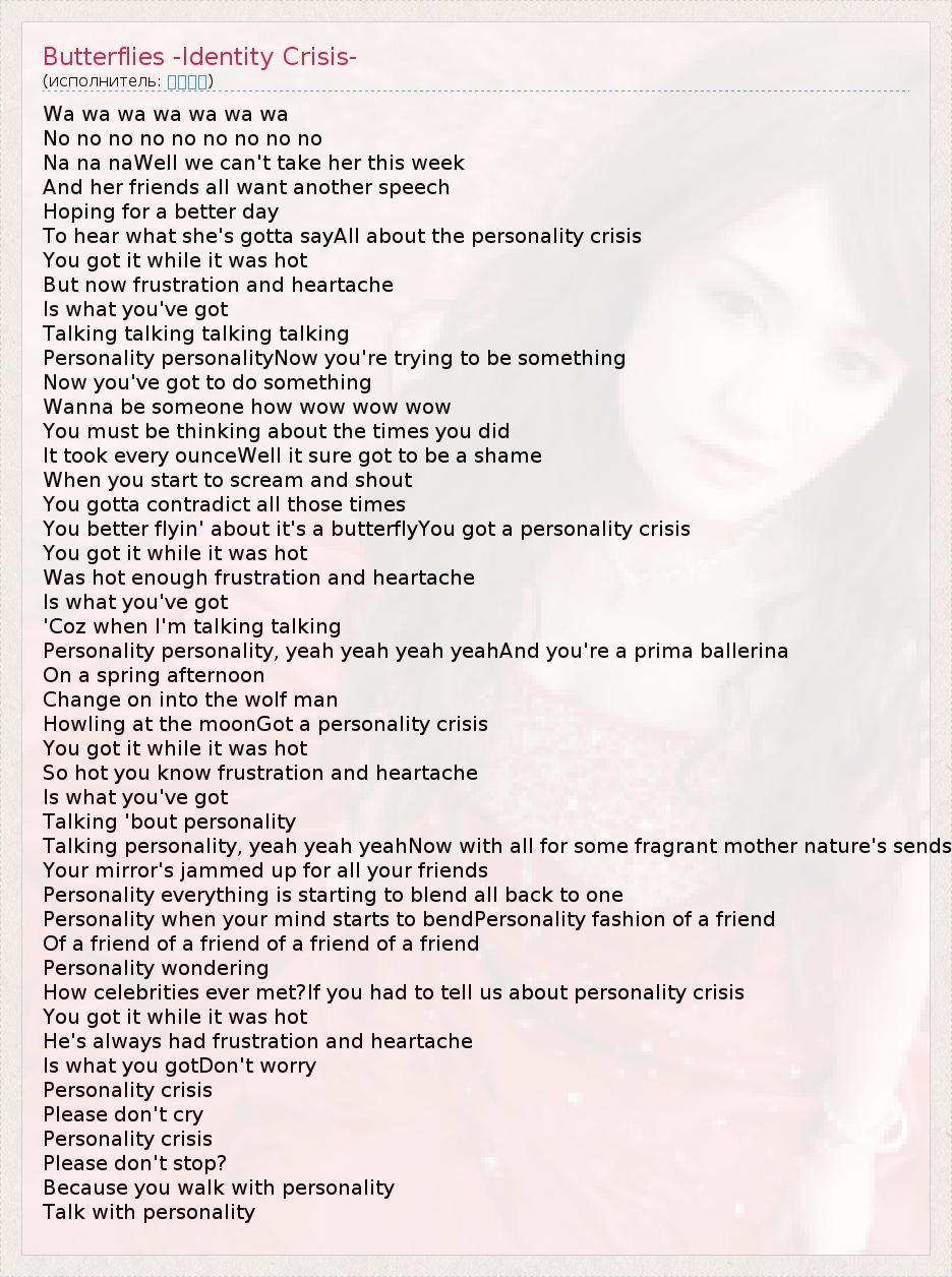 А как ты думаешь, о чем песня "Butterflies -Identity Crisis-" ?