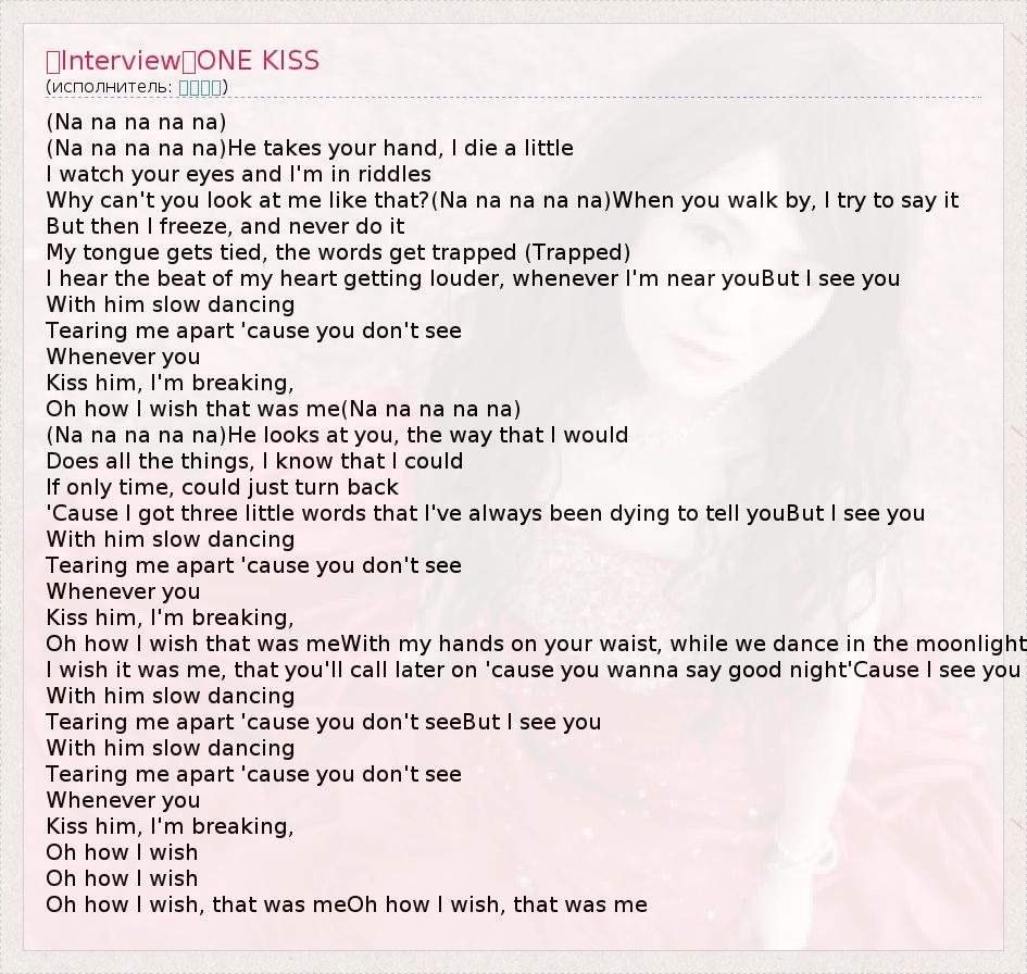 А как ты думаешь, о чем песня "〈Interview〉ONE KISS" ?