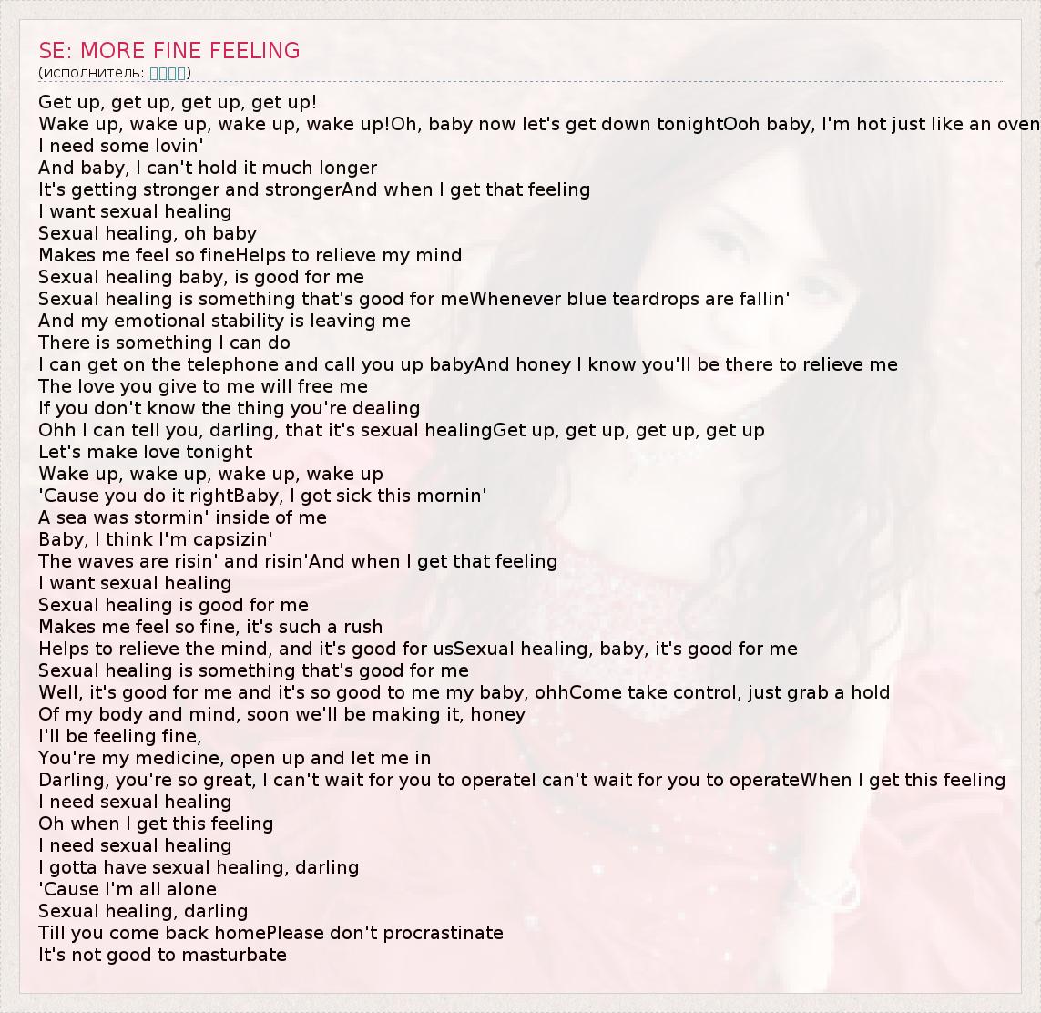Ohh I can tell you, darling, that it's sexual healingGet up, get up, get up, get up