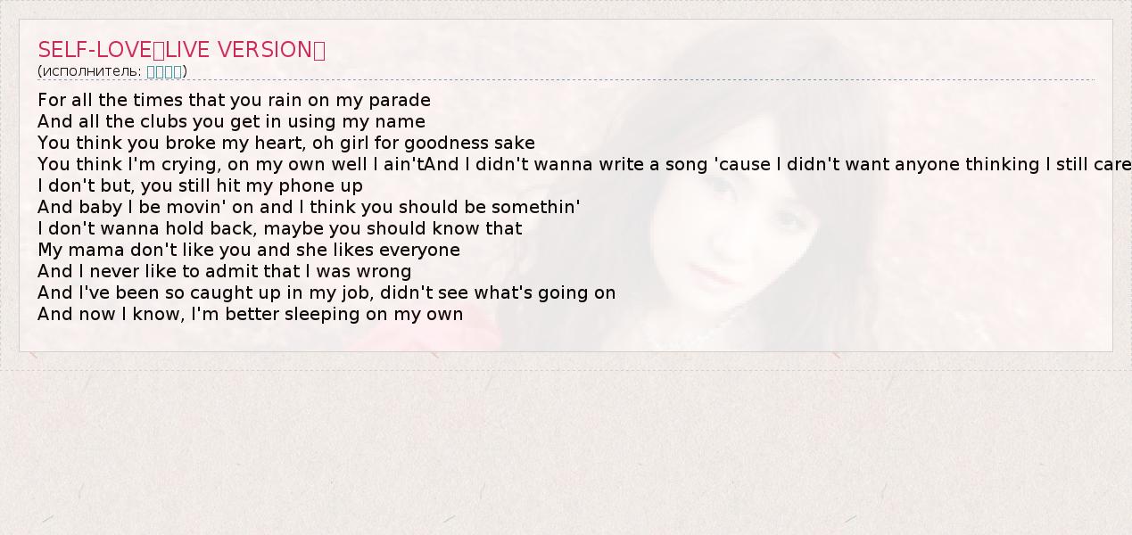 А как ты думаешь, о чем песня "SELF-LOVE〈LIVE VERSION〉" ?
