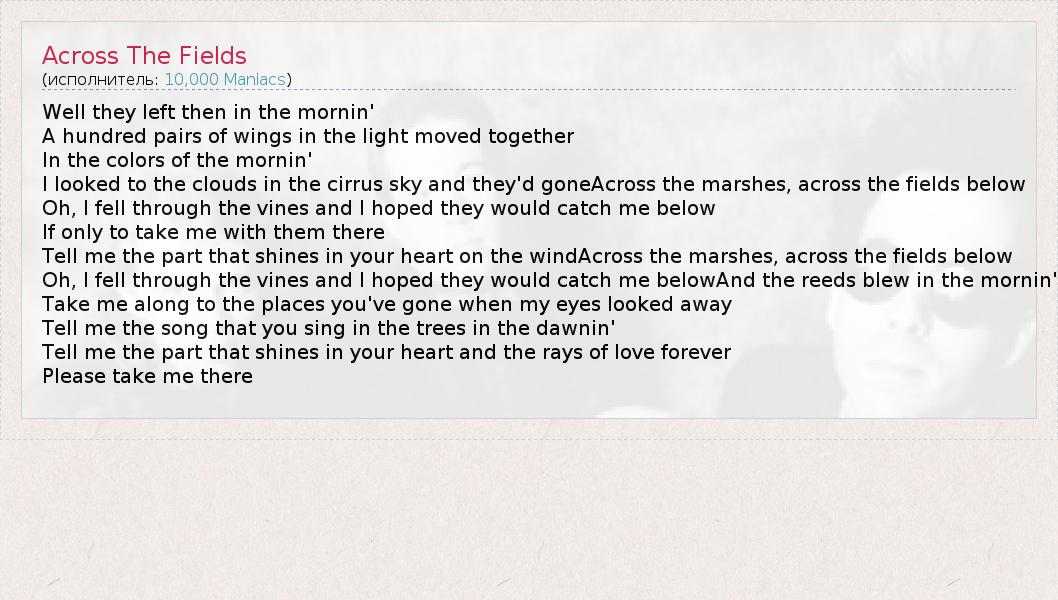 А как ты думаешь, о чем песня "Across The Fields" ?
