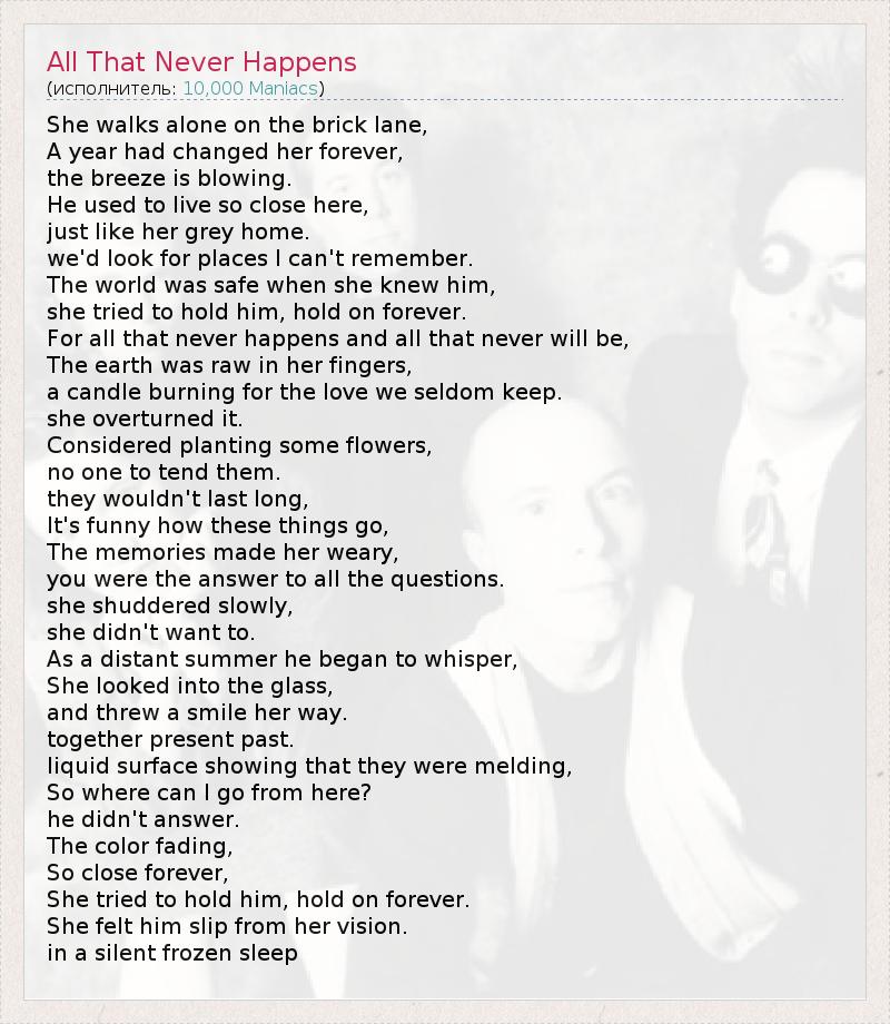 А как ты думаешь, о чем песня "All That Never Happens" ?