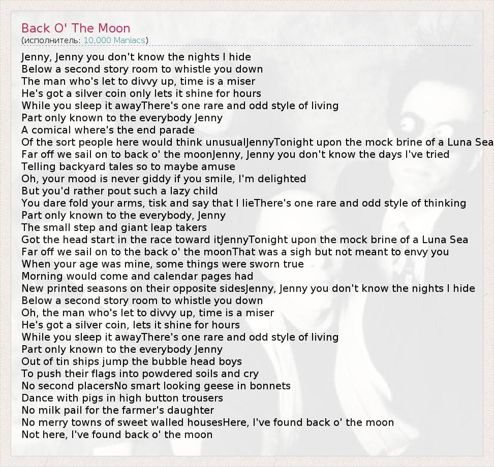 А как ты думаешь, о чем песня "Back O' The Moon" ?