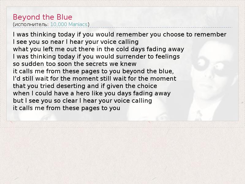 А как ты думаешь, о чем песня "Beyond the Blue" ?