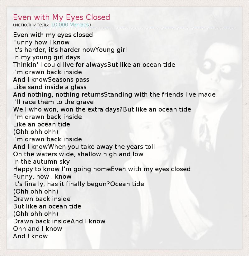 А как ты думаешь, о чем песня "Even with My Eyes Closed" ?