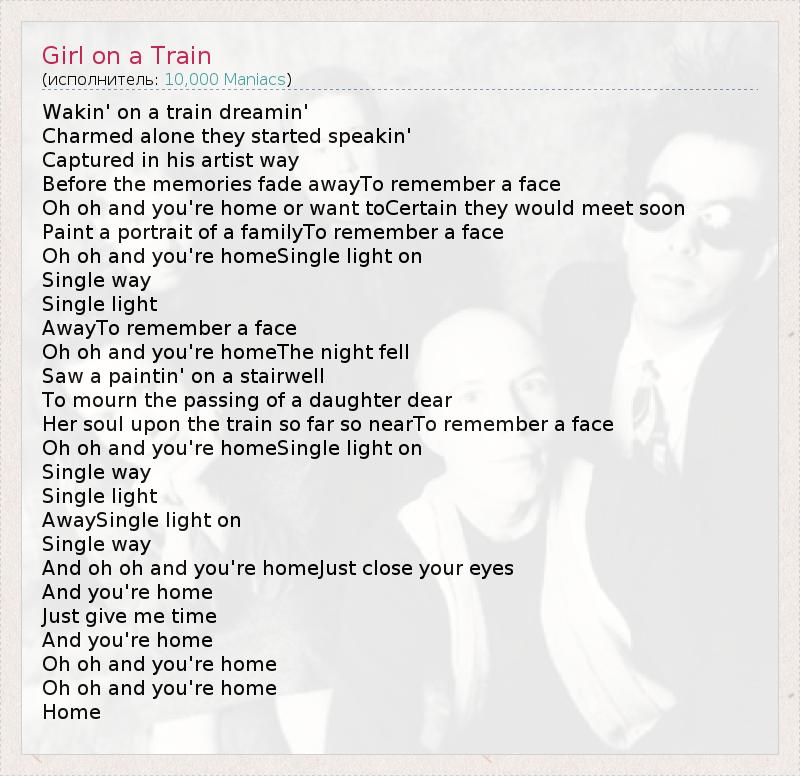 А как ты думаешь, о чем песня "Girl on a Train" ?