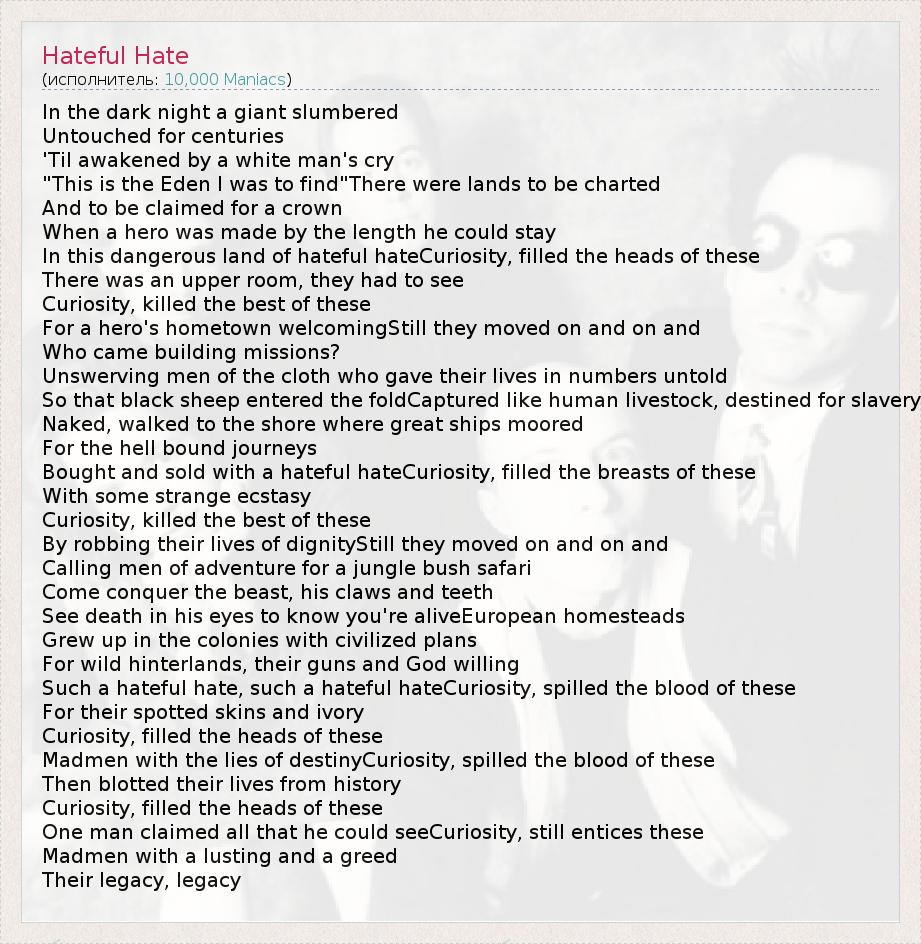 А как ты думаешь, о чем песня "Hateful Hate" ?