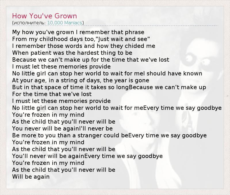 А как ты думаешь, о чем песня "How You've Grown" ?