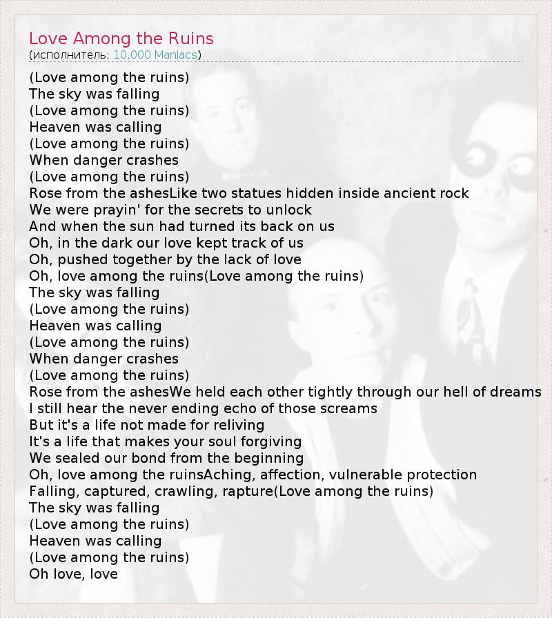 А как ты думаешь, о чем песня "Love Among the Ruins" ?
