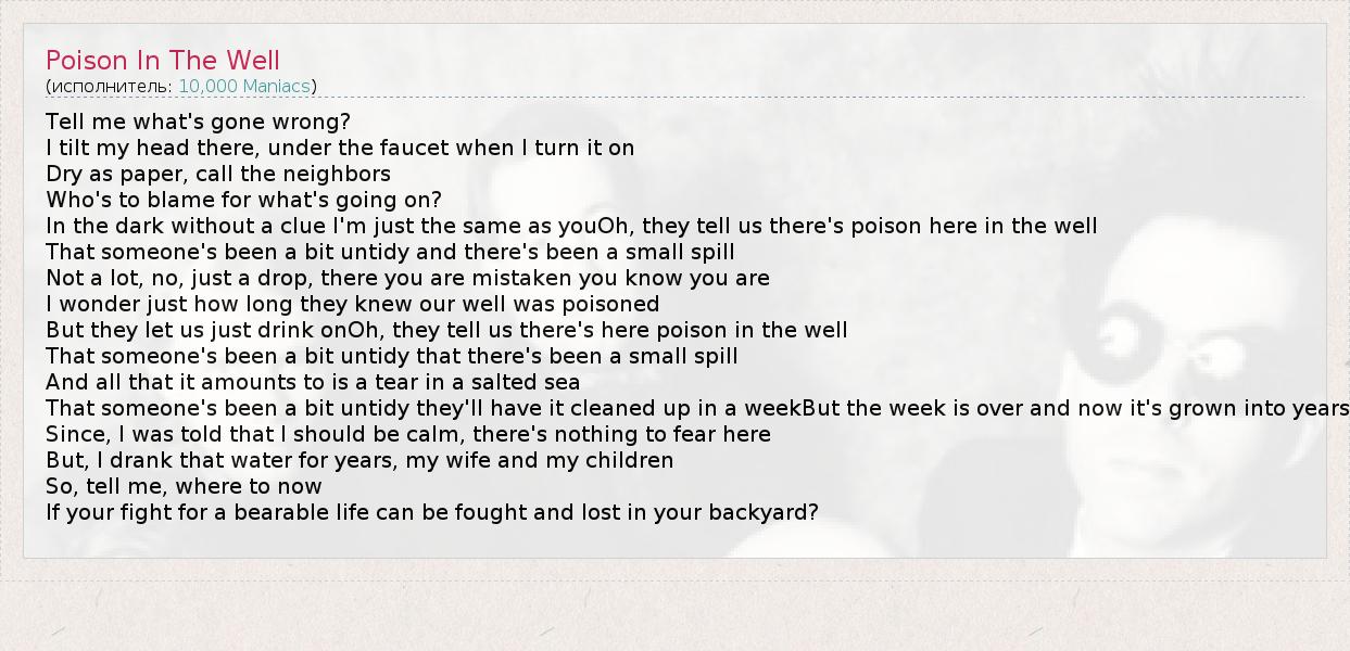 А как ты думаешь, о чем песня "Poison In The Well" ?