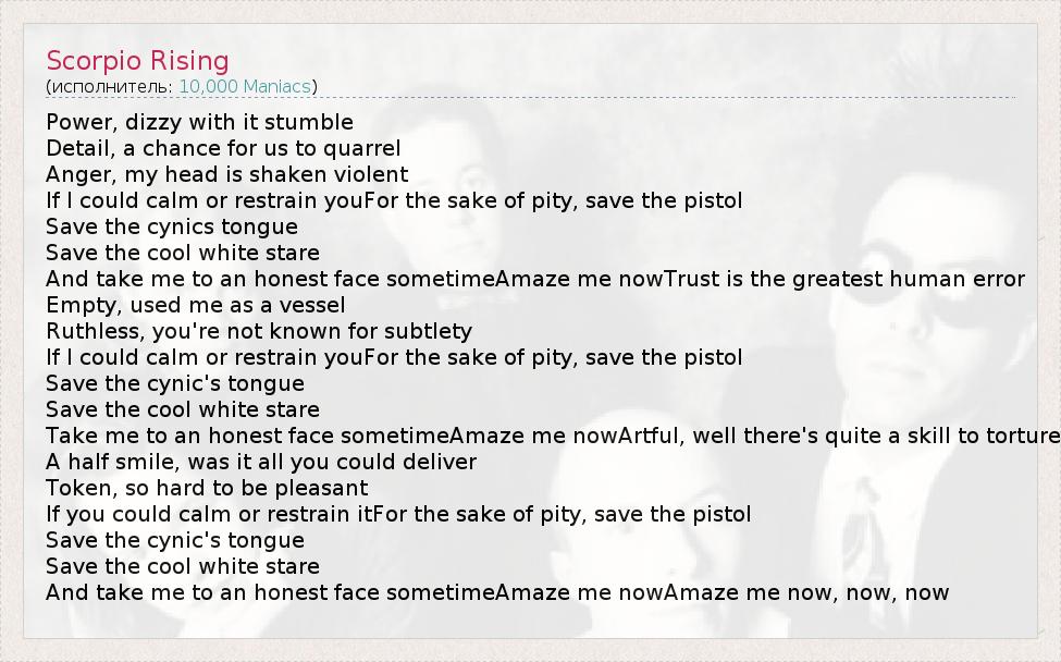 А как ты думаешь, о чем песня "Scorpio Rising" ?
