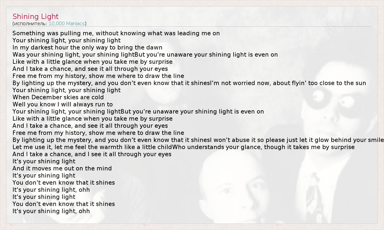 Это интересно:10,000 Мэниакс (10,000 Maniacs) - американская группа 1980-х годов. Впервые появилась в городе Джеймстаун (штат Нью-Йорк) в 1981 в составе: Натали Мерчент (вокал), Джером Огастиньяк (барабаны), Роберт Бак (гитара), Деннис Дрю (клавишные) и Стивен Густафсон (бас). Музыканты играли кавер-версии песен таких групп, как JOY DIVISION и GANG OF FOUR. В сентябре 1993 Натали Мерчент начала свою сольную карьеру.Дискография:HOPE... продолжение