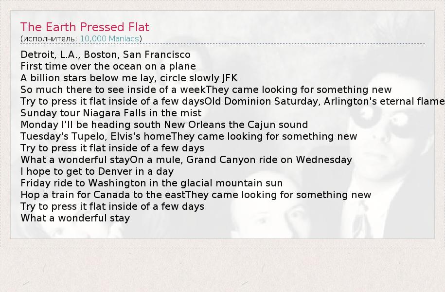 А как ты думаешь, о чем песня "The Earth Pressed Flat" ?