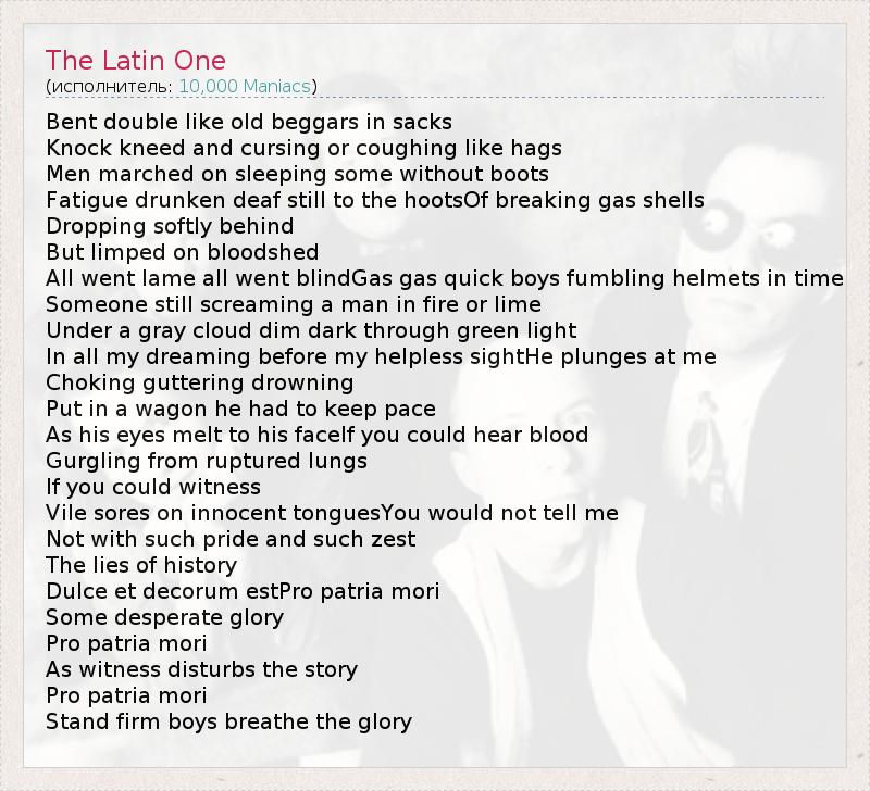 Это интересно:10,000 Мэниакс (10,000 Maniacs) - американская группа 1980-х годов. Впервые появилась в городе Джеймстаун (штат Нью-Йорк) в 1981 в составе: Натали Мерчент (вокал), Джером Огастиньяк (барабаны), Роберт Бак (гитара), Деннис Дрю (клавишные) и Стивен Густафсон (бас). Музыканты играли кавер-версии песен таких групп, как JOY DIVISION и GANG OF FOUR. В сентябре 1993 Натали Мерчент начала свою сольную карьеру.Дискография:HOPE... продолжение