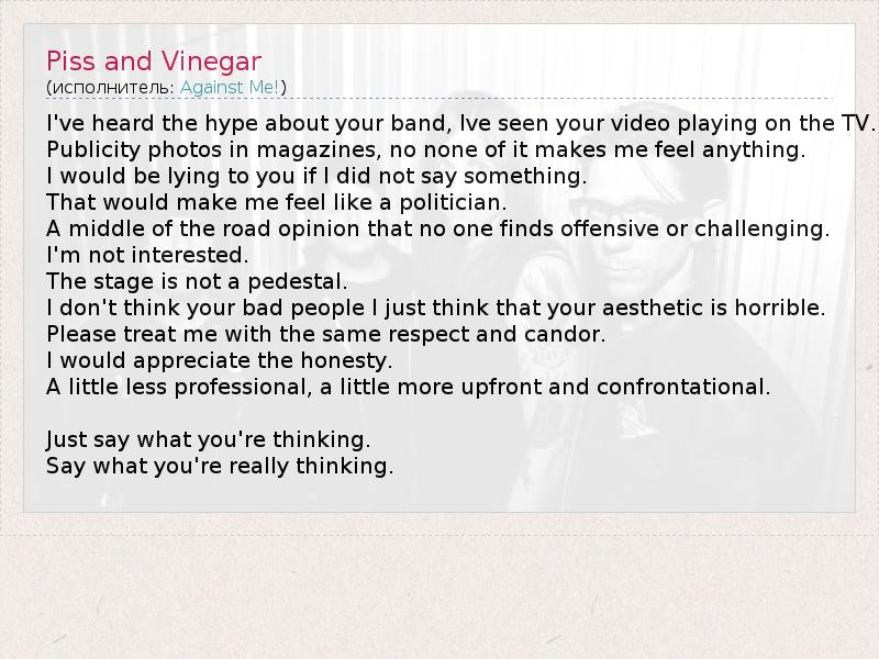 А как ты думаешь, о чем песня "Piss and Vinegar" ?