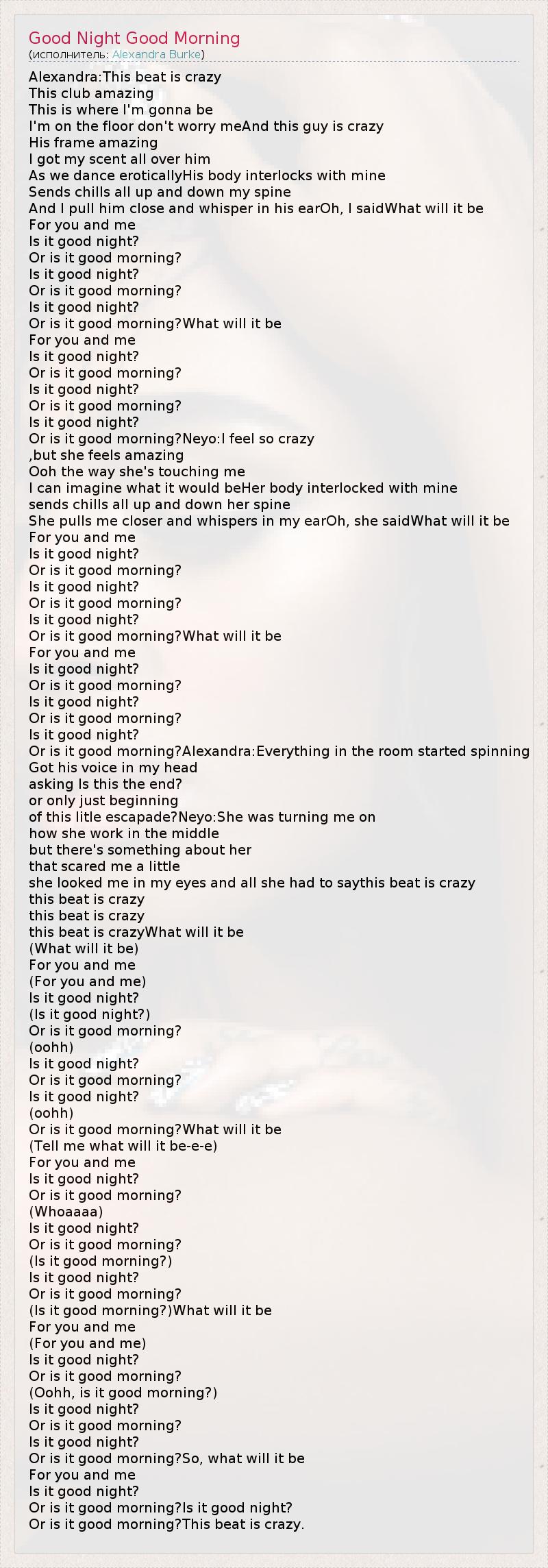 А как ты думаешь, о чем песня "Good Night Good Morning" ?