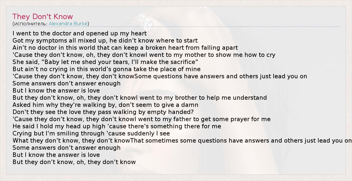 А как ты думаешь, о чем песня "They Don't Know" ?