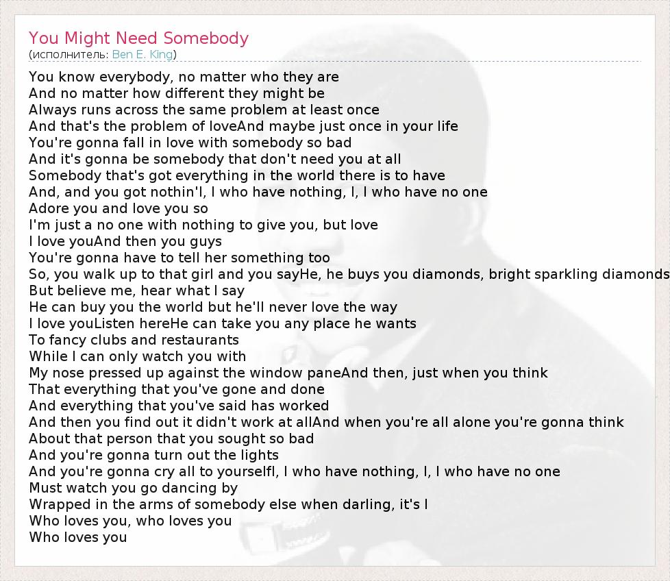 А как ты думаешь, о чем песня "You Might Need Somebody" ?