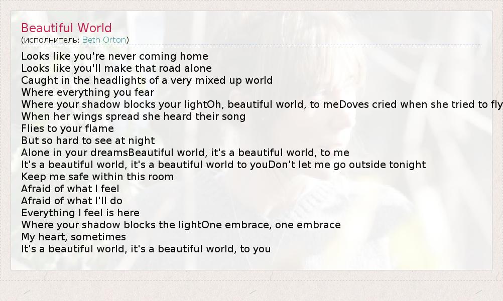 А как ты думаешь, о чем песня "Beautiful World" ?