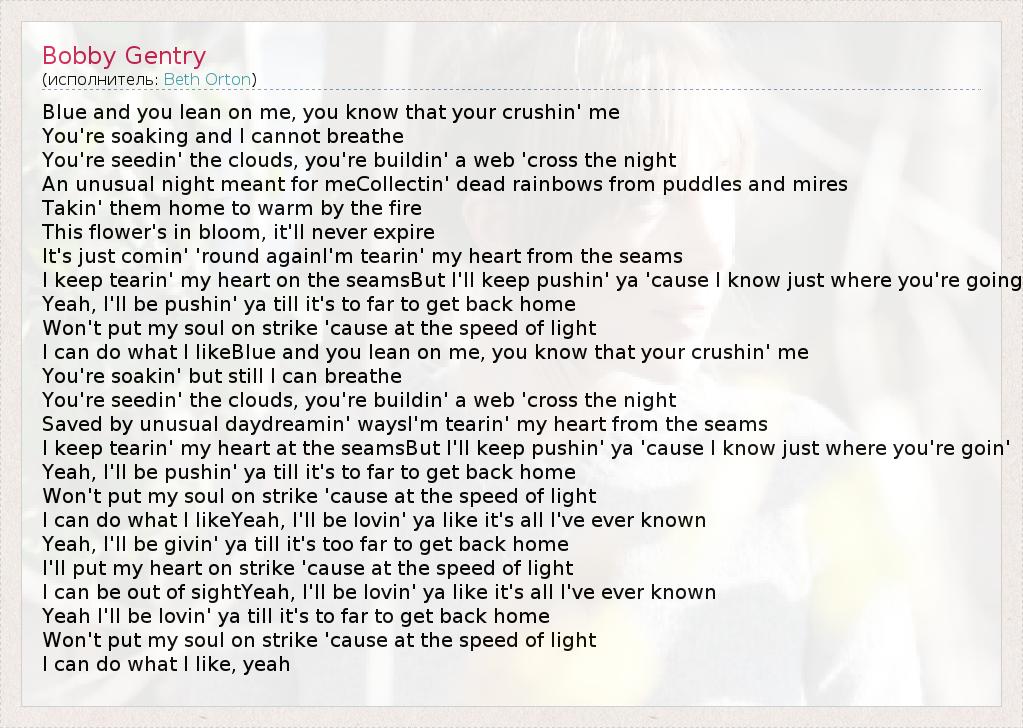 А как ты думаешь, о чем песня "Bobby Gentry" ?