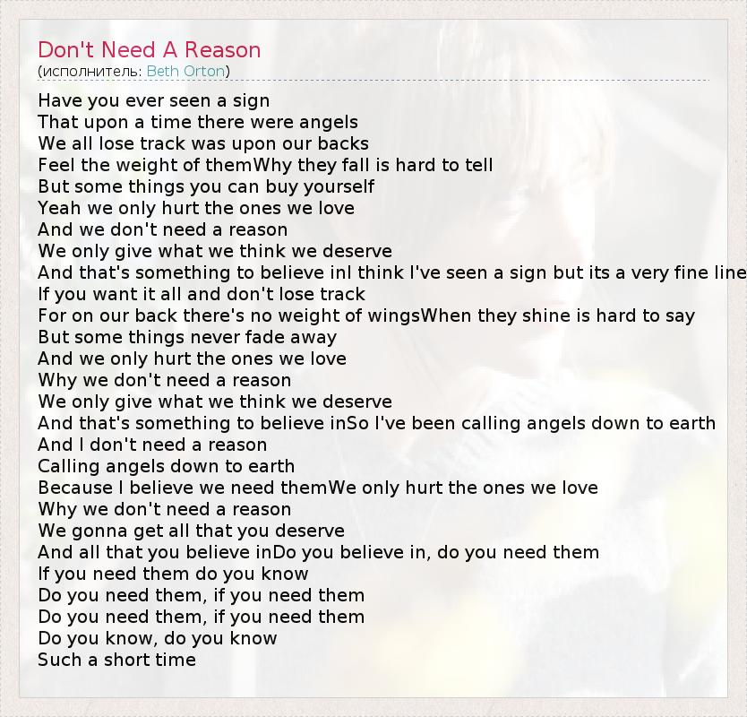 А как ты думаешь, о чем песня "Don't Need A Reason" ?