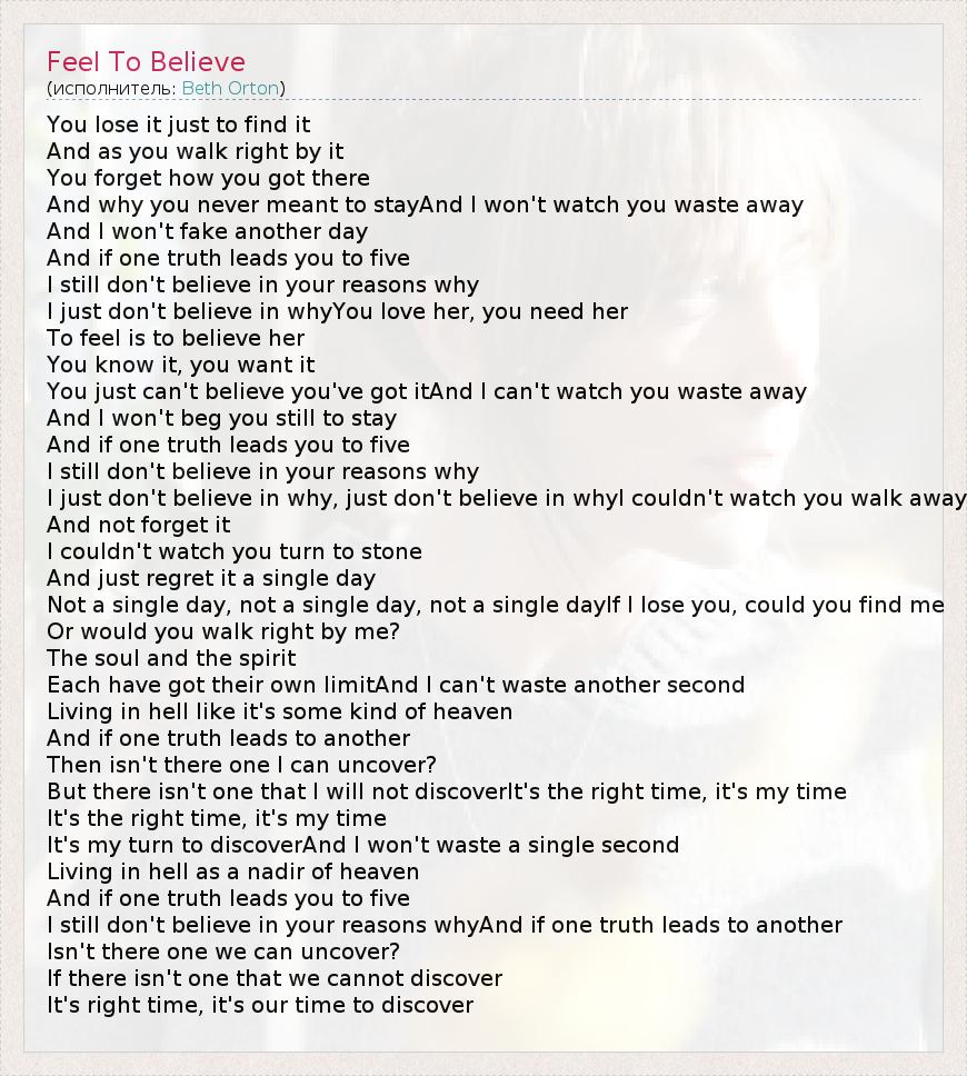 А как ты думаешь, о чем песня "Feel To Believe" ?
