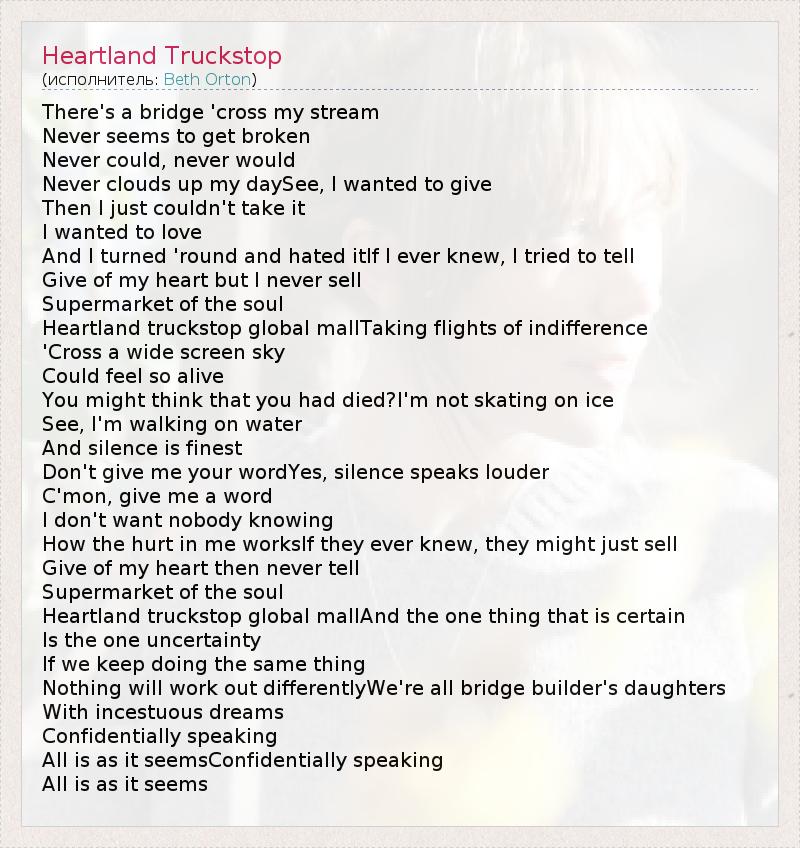 А как ты думаешь, о чем песня "Heartland Truckstop" ?