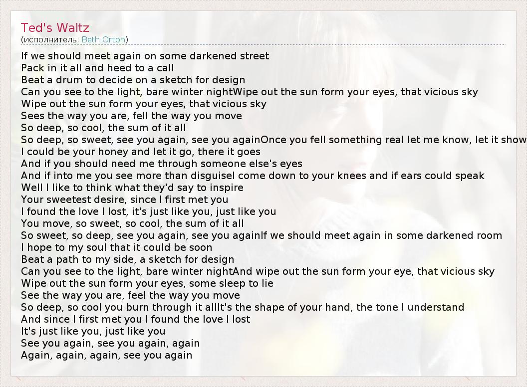 А как ты думаешь, о чем песня "Ted's Waltz" ?