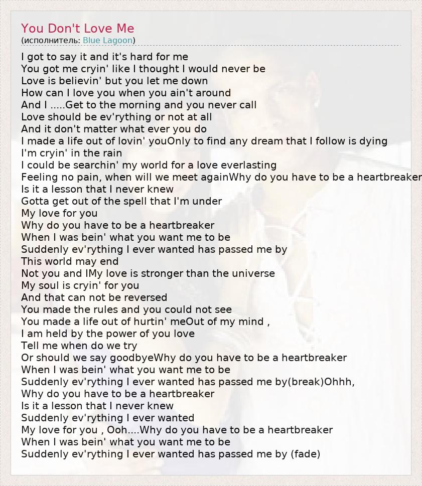 А как ты думаешь, о чем песня "You Don't Love Me" ?