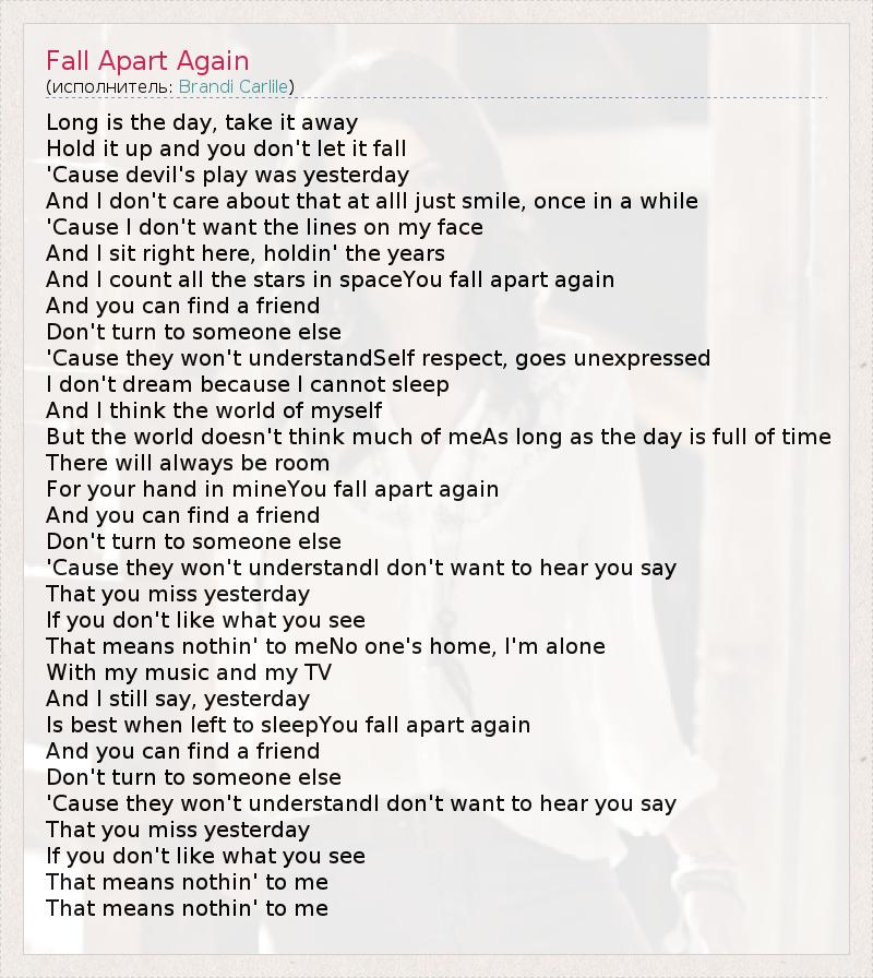 А как ты думаешь, о чем песня "Fall Apart Again" ?