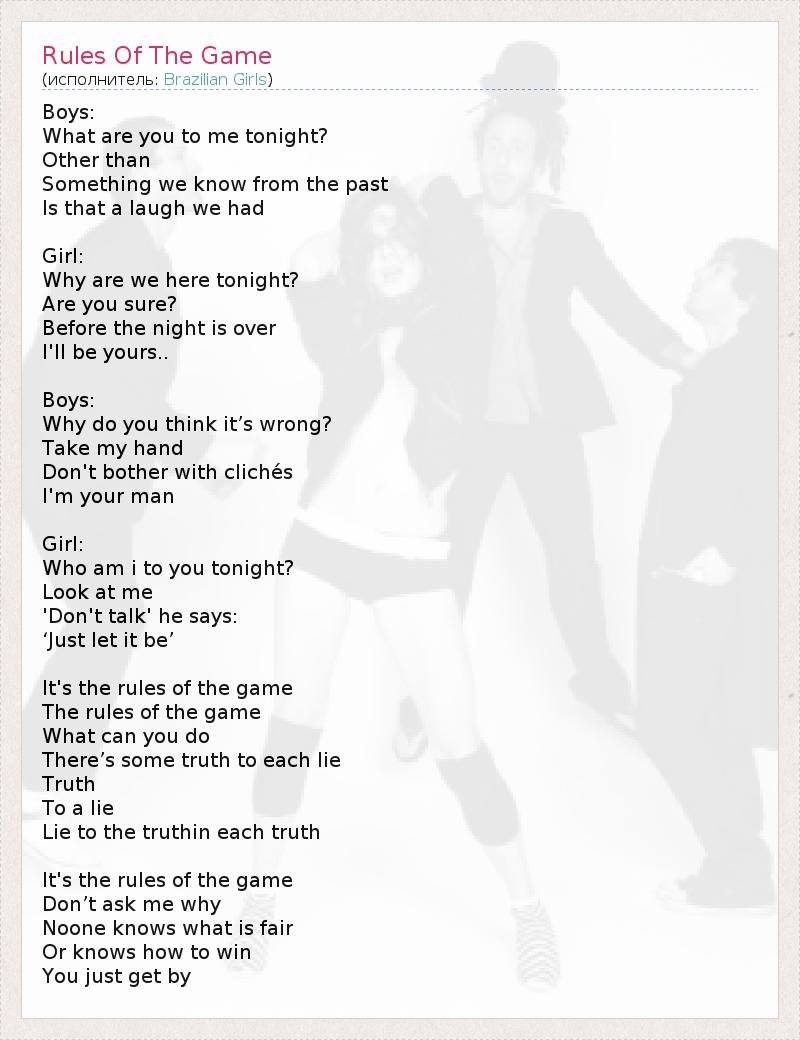 А как ты думаешь, о чем песня "Rules Of The Game" ?
