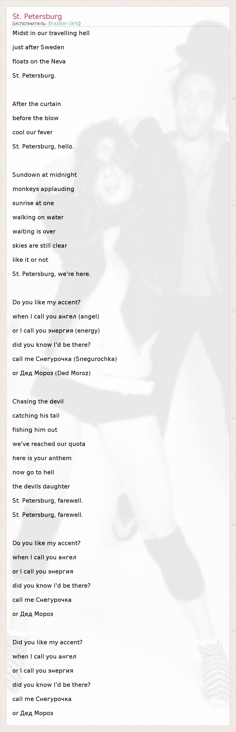 А как ты думаешь, о чем песня "St. Petersburg" ?