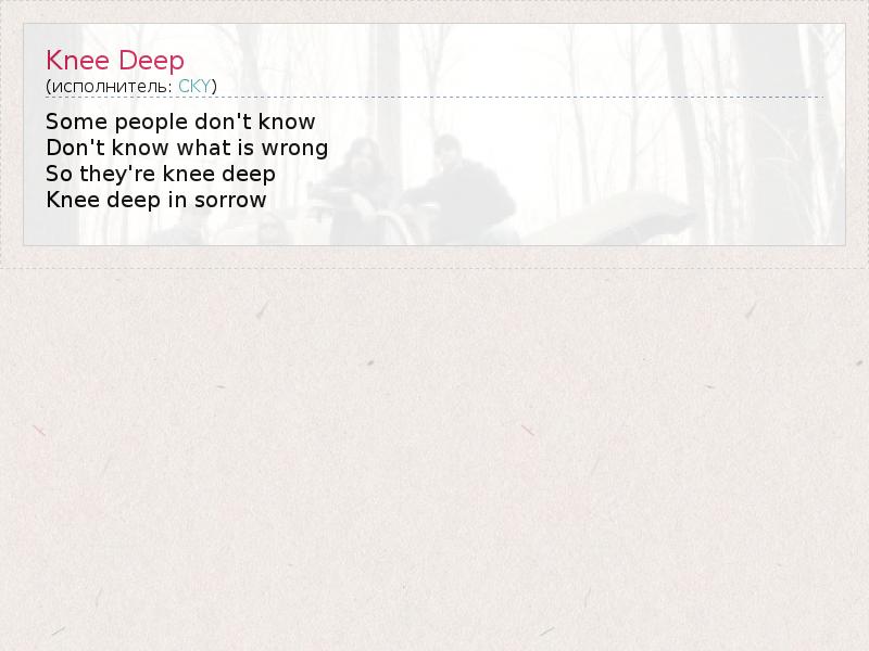 А как ты думаешь, о чем песня "Knee Deep" ?