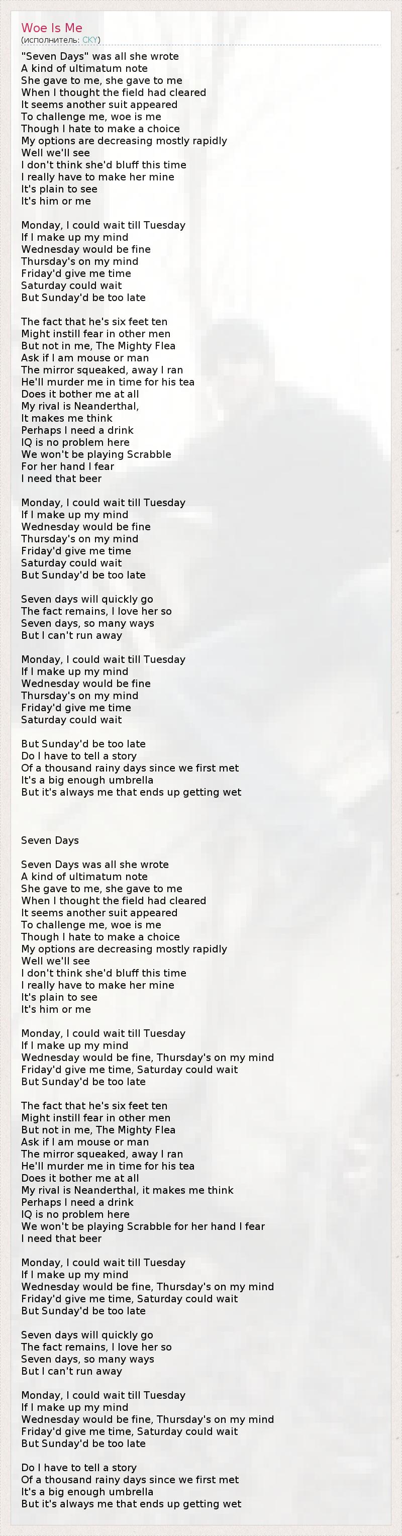 А как ты думаешь, о чем песня "Woe Is Me" ?
