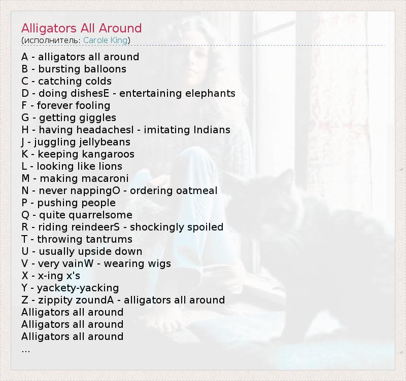 А как ты думаешь, о чем песня "Alligators All Around" ?