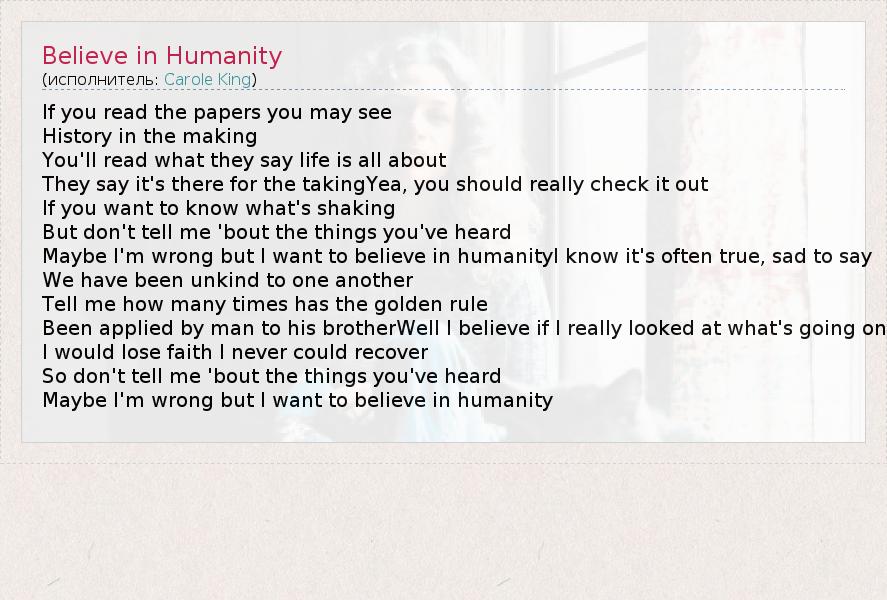А как ты думаешь, о чем песня "Believe in Humanity" ?