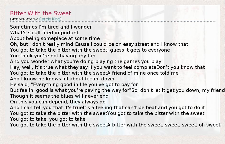 А как ты думаешь, о чем песня "Bitter With the Sweet" ?