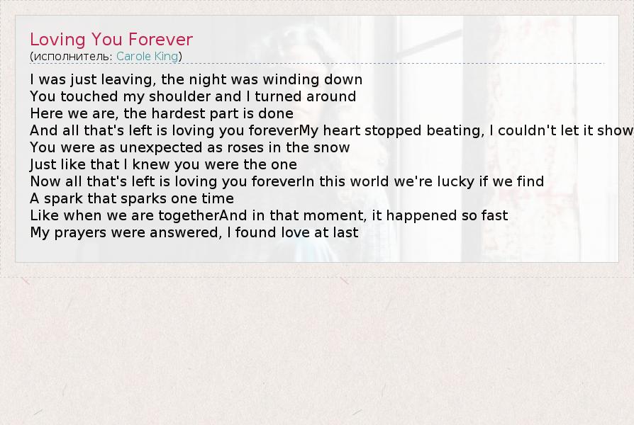 А как ты думаешь, о чем песня "Loving You Forever" ?