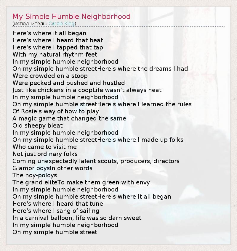 А как ты думаешь, о чем песня "My Simple Humble Neighborhood" ?