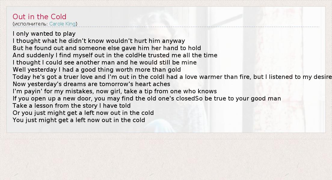 А как ты думаешь, о чем песня "Out in the Cold" ?