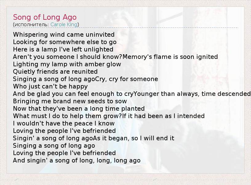 And singin' a song of long, long, long ago
