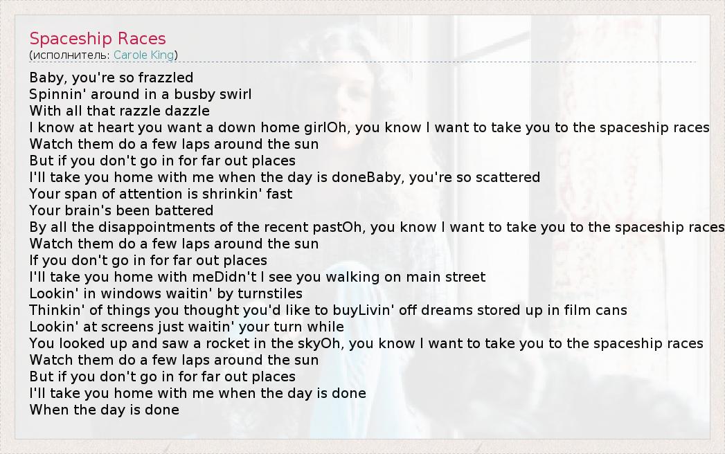 А как ты думаешь, о чем песня "Spaceship Races" ?