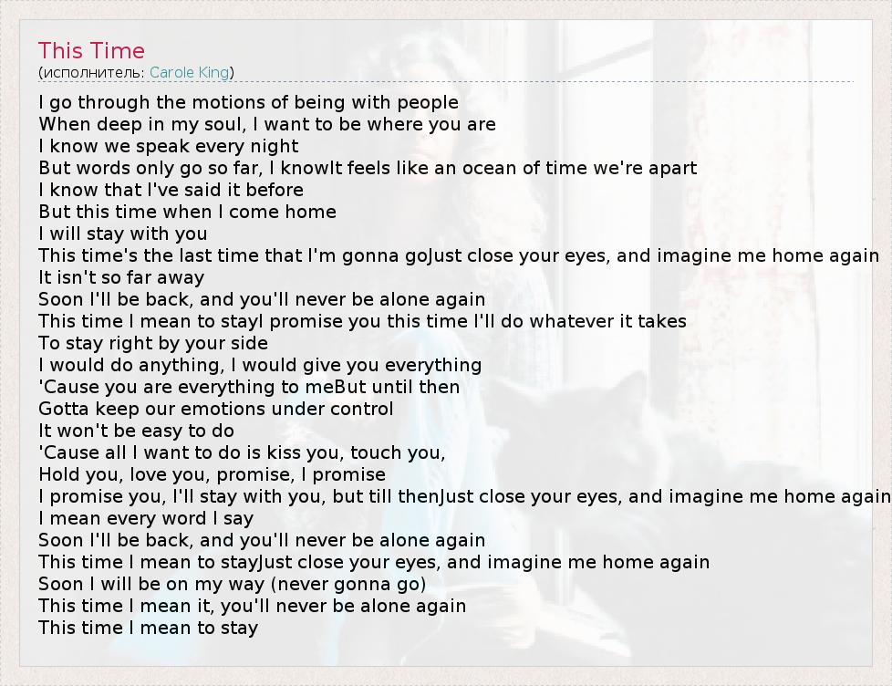 This time I mean to stayI promise you this time I'll do whatever it takes