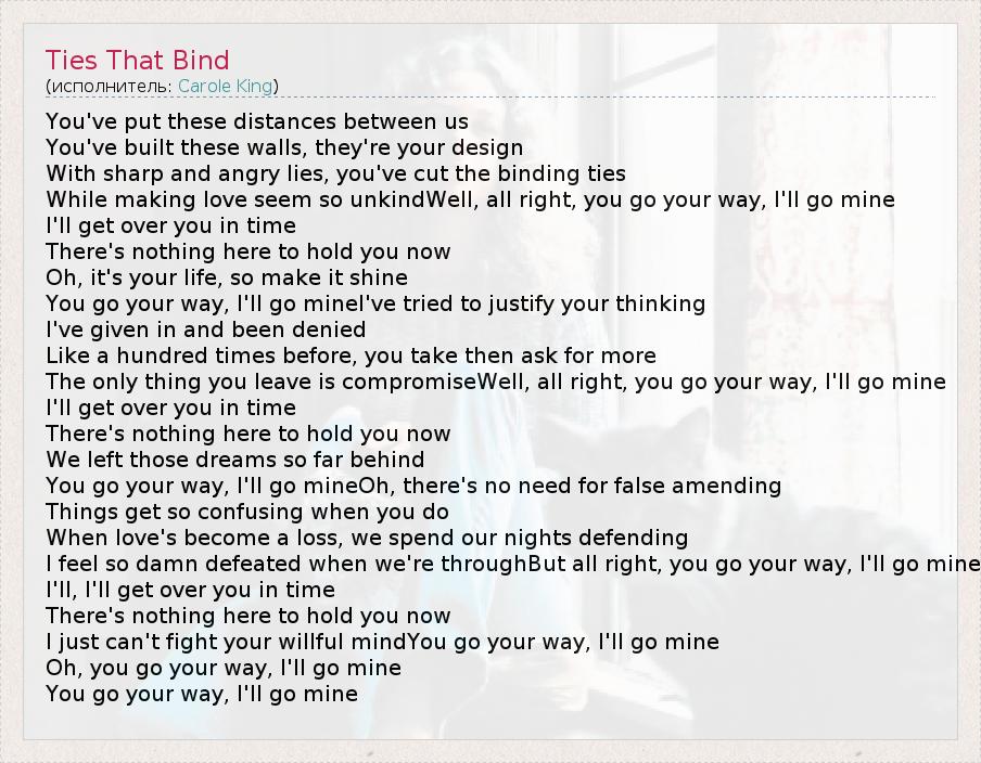 А как ты думаешь, о чем песня "Ties That Bind" ?