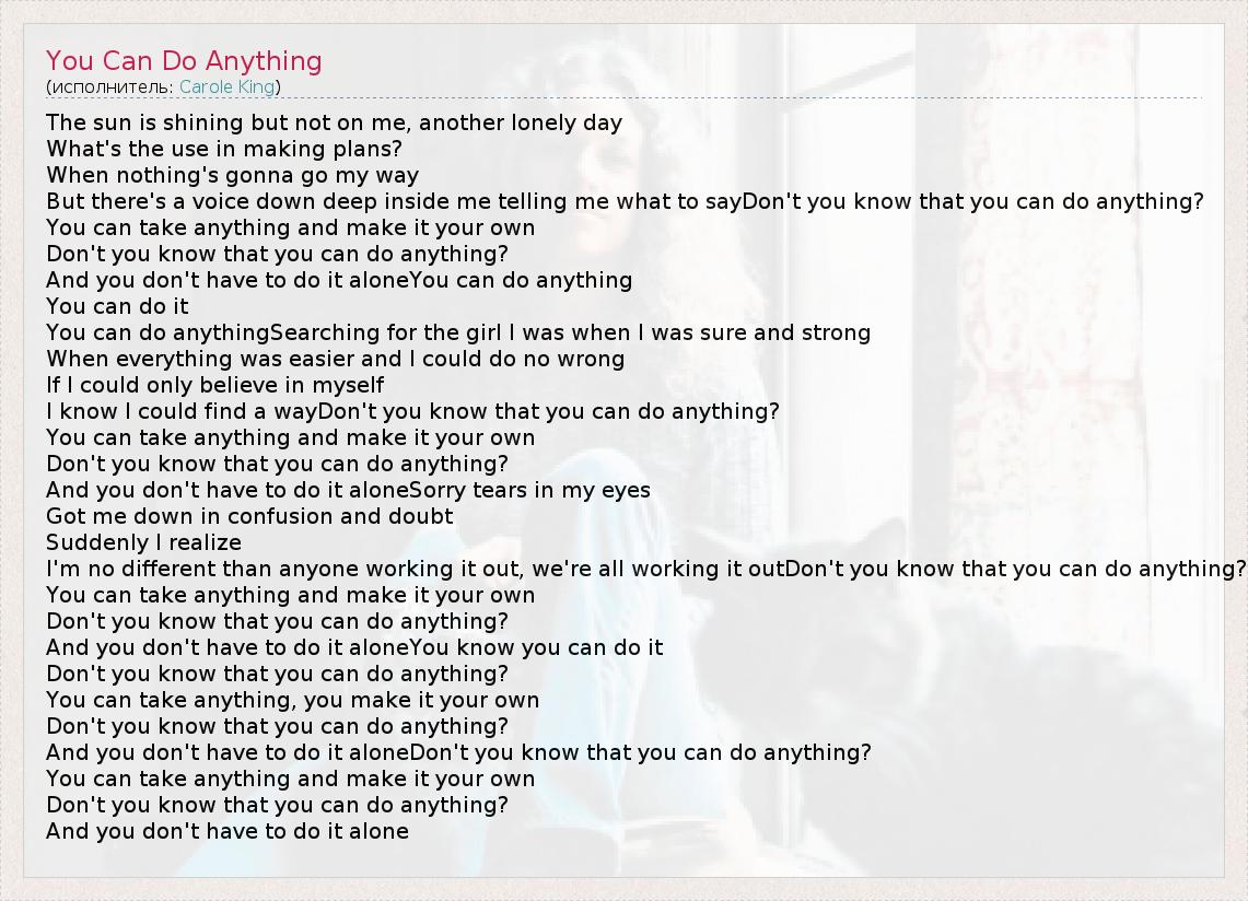 А как ты думаешь, о чем песня "You Can Do Anything" ?