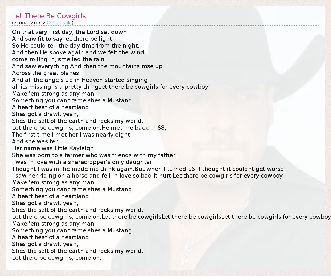 А как ты думаешь, о чем песня "Let There Be Cowgirls" ?