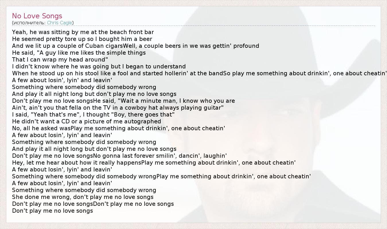А как ты думаешь, о чем песня "No Love Songs" ?