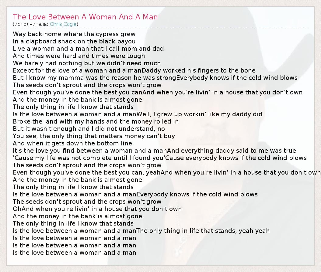 А как ты думаешь, о чем песня "The Love Between A Woman And A Man" ?