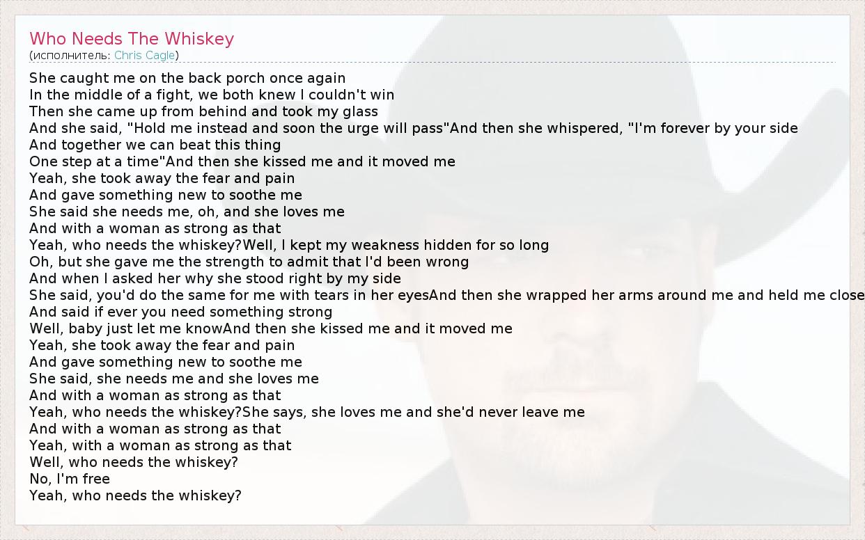 А как ты думаешь, о чем песня "Who Needs The Whiskey" ?